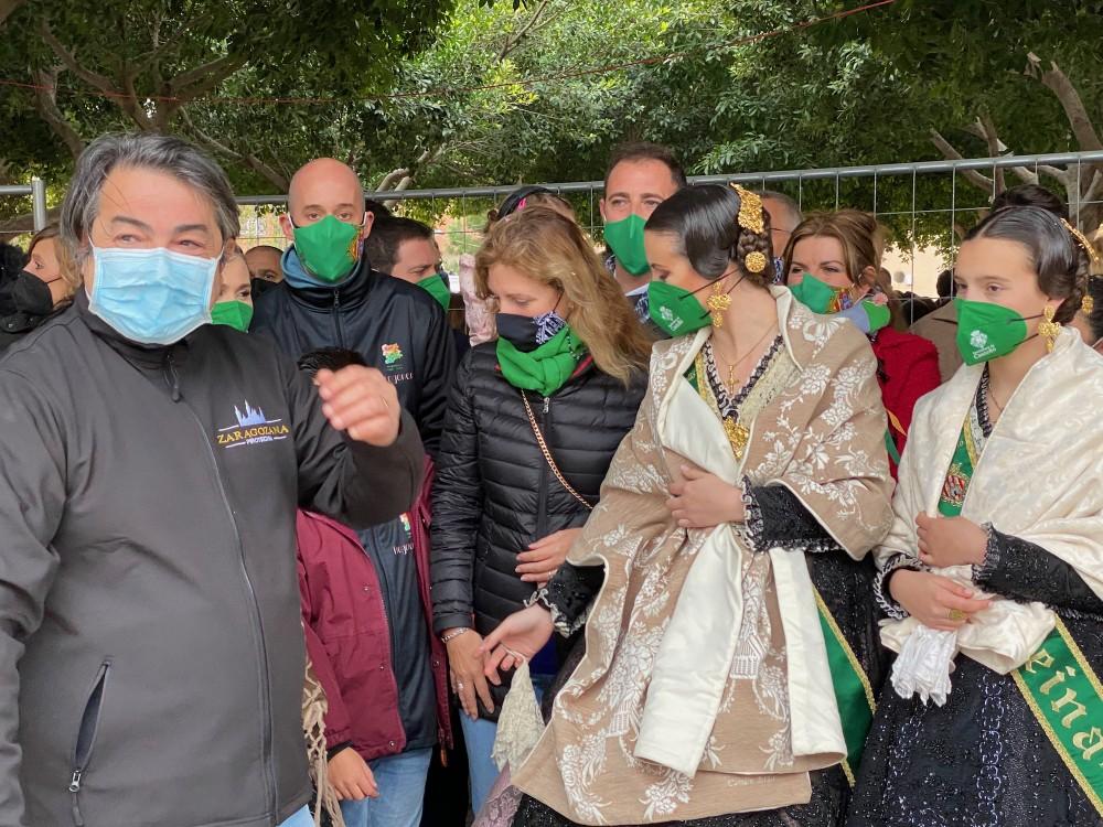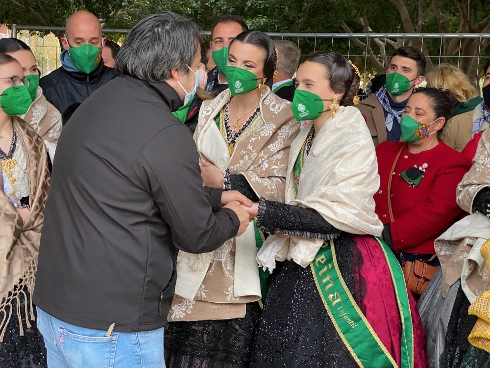 Mucho ambiente en el recinto de mascletàs, donde además de las reinas y sus cortes, se daban cita los pregoneros, alas autoridades de Castelló y también la Na Violant y Dones de Companya de la Germandat.