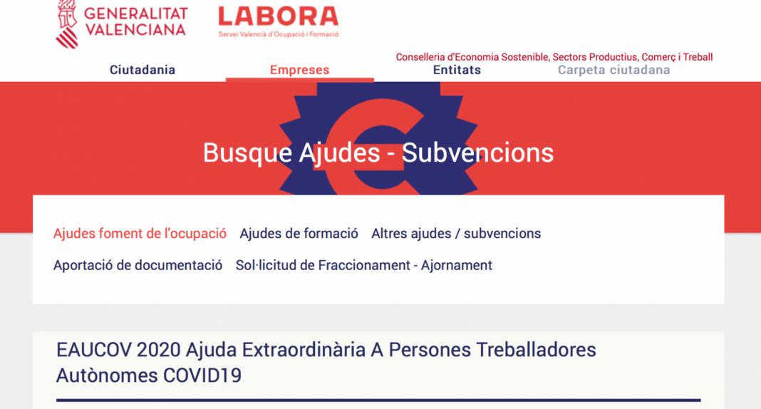 Labora, el Servicio Valenciano de Empleo y Formación, ha recibido hasta las 13:00 horas de este miércoles alrededor de 102.000 solicitudes para las ayudas de personas trabajadoras autónomas afectadas por la situación de crisis sanitaria ocasionada por la COVID-19.