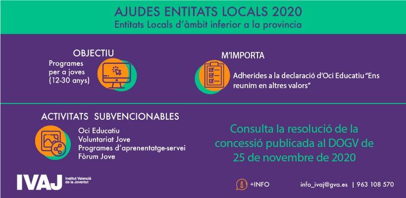 El Institut Valencià de la Joventut (IVAJ) ha concedido las ayudas destinadas a entidades locales para desarrollar programas de juventud durante el año 2020, con una dotación total de 1.000.000 euros.