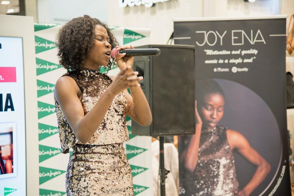 Coincidiendo con la celebración del décimo tercer Aniversario de El Corte Inglés en Castellón, Joy Ena, cantante de Soul & Funk, ofreció un animado concierto navideño en la Planta Baja del centro.