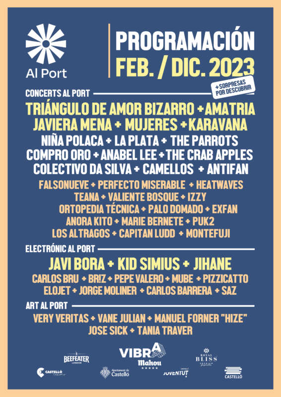 Al Port 2023 ha arrancado con una fiesta de presentación a medios en el centro de Castellón. Como comentaba el presidente de la Autoridad Portuaria, Rafael Simó “Al Port va de que la ciudad abrace el puerto, pero esta vez es el puerto quien ha venido a la ciudad a hacer una presentación del ciclo. Con esta programación para todo 2023 consolidamos un proyecto que lleva a un nivel superior la relación del puerto con su ciudad. Se trata de un paso adelante en la calidad de la programación, con bandas nacionales emergentes y también con bandas de aquí para conformar un gran cartel, potenciando las fiestas electrónicas y con nada menos que cinco murales para complementar los tres que ya hay creados y dar forma a una avenida del arte, que sin duda será un potente atractivo para redes sociales. Un modelo de éxito, que ha conseguido dinamizar el puerto y hacer que los castellonenses disfruten con una oferta de entretenimiento variada y gratuita.”
