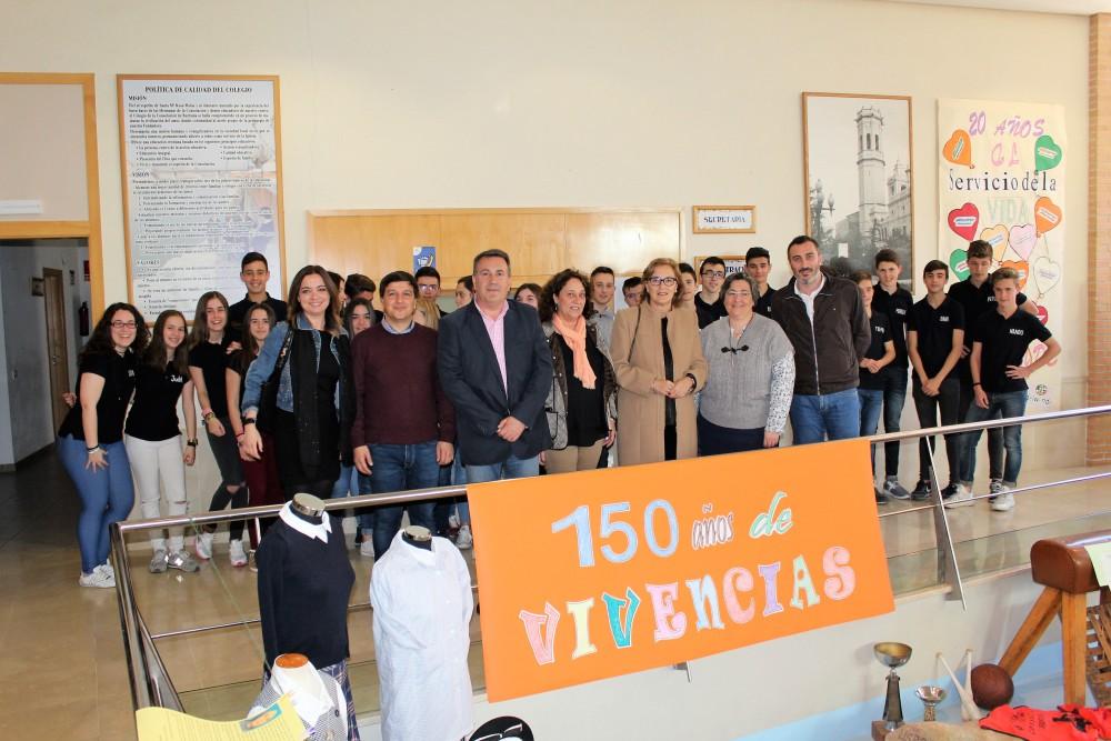 La alcaldesa de Borriana, Maria Josep Safont, y varios de los representantes municipales del consistorio han querido estar presentes en los primeros actos de celebración del 150 aniversario del colegio de La Consolación de Borriana. Tras escuchar el discurso de una de las responsables del centro y la interpretación por parte de los alumnos de cuarto de ESO de una de las piezas dedicadas a la fundadora María Rosa Molas, la alcaldesa ha inaugurado la exposición que a través de decenas de fotografías repasa las historia del siglo y medio de vida de la institución. Además, un muestrario de libros, indumentarias, material escolar, pupitres y banderas representativas de los proyectos llevados a cabo por La Consolación preside el hall de entrada del colegio, en el que se han tomado fotografías junto al equipo directivo del centro y los alumnos presentes en este primer acto de celebración de aniversario.