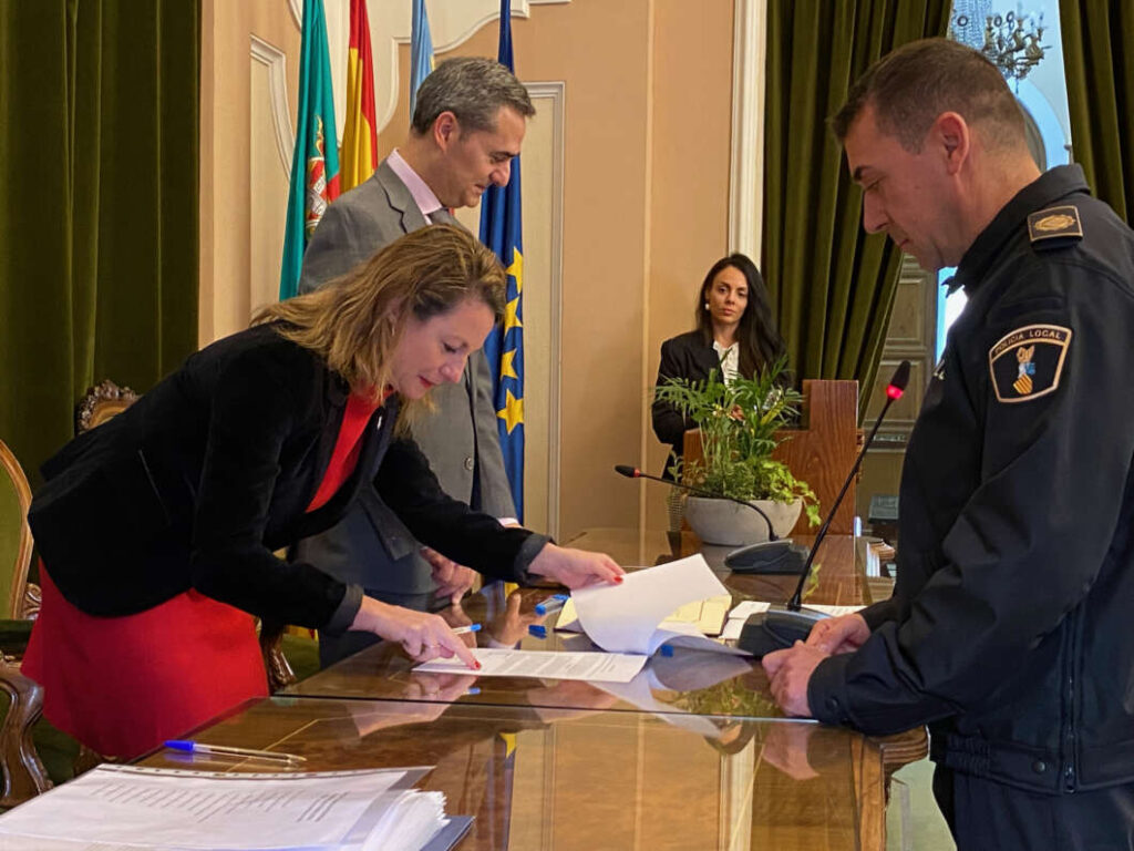 Uno a uno, los agentes han sido llamados por su nombre y apellidos hasta la mesa de presidencia. Allí han jurado su cargo y posteriormente han firmado el contrato de su vida, que también ha sido rubricado por la alcaldesa de Castellón, Begoña Carrasco, y el secretario municipal.