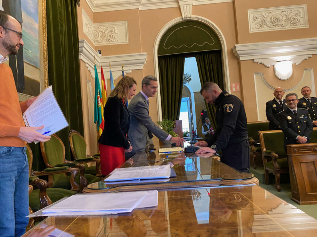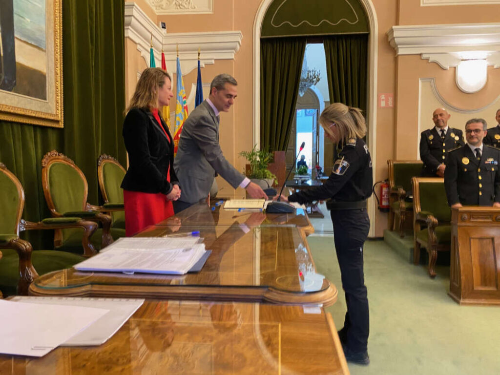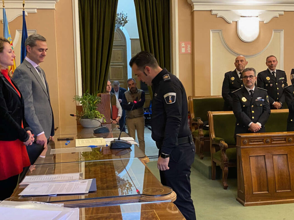 El proceso se ha prolongado un poco. Era de esperar, eran 16 hombres y mujeres que, uno a uno, han formalizado su juramento y los documentos que lo acompañaban. Y mientras, la alcaldesa de Castellón, Begoña Carrasco y el concejal de Seguridad, Antonio Ortolá, les preguntaban por su antigüedad, por sus familias, por sus circunstancias.