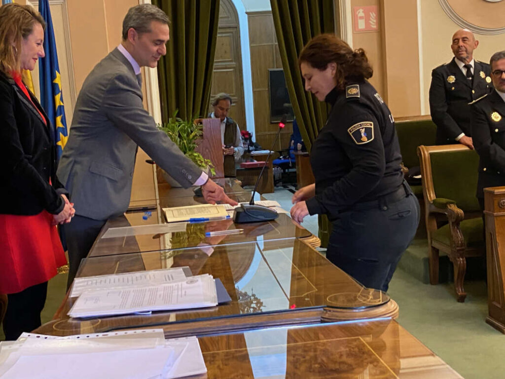 El acto se ha desarrollado en el Salón de plenos del Ayuntamiento, presido por la alcaldesa y el concejal de Seguridad Ciudadana, y en presencia de los altos mandos del cuerpo. En el público también estaban presentes sus familiares.