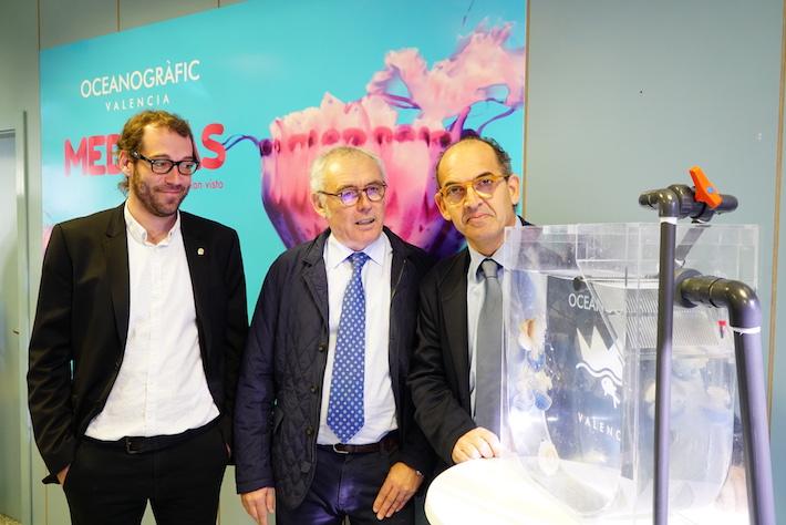 Esta mañana, en el Oceanogràfic de Valencia, se han presentado las novedades que tendrán lugar a partir de abril en el acuario más grande de Europa. Eduardo Nogués, subdirector general de Avanqua-Oceanogràfic y Xoan Domínguez, director de la exposición de medusas, han sido los interlocutores para introducir los diversos cambios que se producirán. Una exposición con más de 21 especies distintas de medusas, incluyendo la medusa inmortal, distribuidas por los distintos hábitats del Oceanogràfic en 40.500 litros de agua, acercarán al público general a estos curiosos animales, compuestos en un 95% de agua que llevan en la Tierra más de 700 millones de años. Los tamaños que alcanzan van desde 1 cm a 210 cm, y su forma de alimentación va desde la fotosíntesis hasta la ingesta de otras medusas.