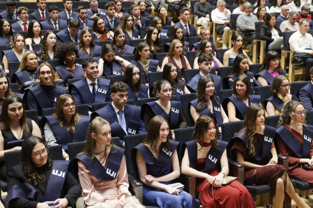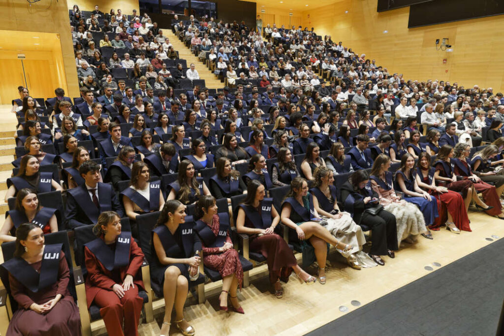 El Paranimf de la Universitat Jaume I ha acollit els actes oficials de graduació de les titulacions de Mestre/a en Educació Primària i Educació Infantil i de la primera promoció de Ciències de l'Activitat Física i de l'Esport de la Facultat de Ciències Humanes i Socials (FCHS). En total hi han assistit 221 graduats i graduades que han finalitzat els seus estudis en el curs 2024-2025, 86 del Grau en Mestre/a en Educació Primària i 135 del Grau en Mestre/a en Educació Infantil i el Grau en Ciències de l'Activitat Física i de l'Esport.
