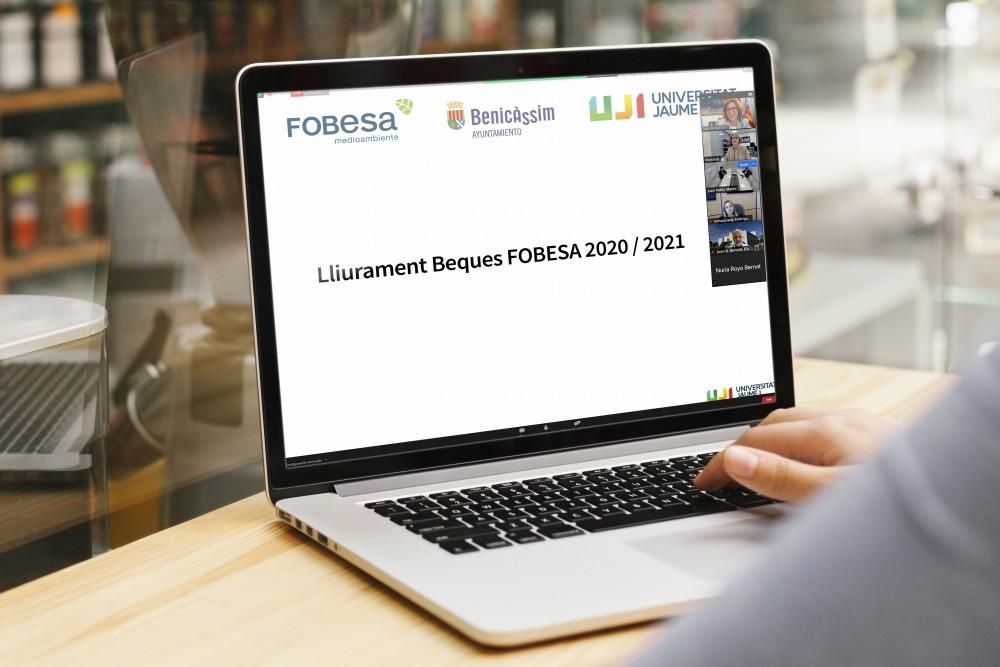 La Universitat Jaume I y FOBESA han entregado las Becas FOBESA concedidas a 26 estudiantes de grado de la UJI residentes en Benicàssim en un acto que se ha celebrado virtualmente hoy 20 de mayo de 2021, presidido por la rectora, Eva Alcón, y que ha contado con la participación de la vicerrectora de Estudios y Compromiso Social, Inmaculada Rodríguez; la alcaldesa de Benicàssim, Susana Marqués; el presidente del Grupo Gimeno, Enrique Gimeno; el director de Fobesa, Juan Pablo Mateo, y el gerente de la Fundación General de la UJI, Juan Antonio Bertolín.