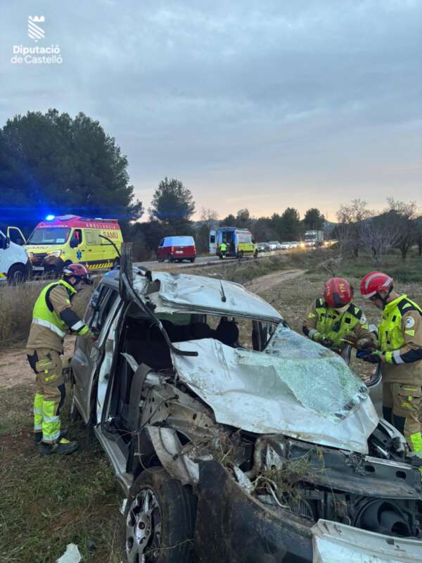 A primera hora de esta mañana efectivos de los Bomberos del parque Plana Alta han intervenido en un accidente de tráfico en la CV-15 dentro del término municipal de Vilafamés.