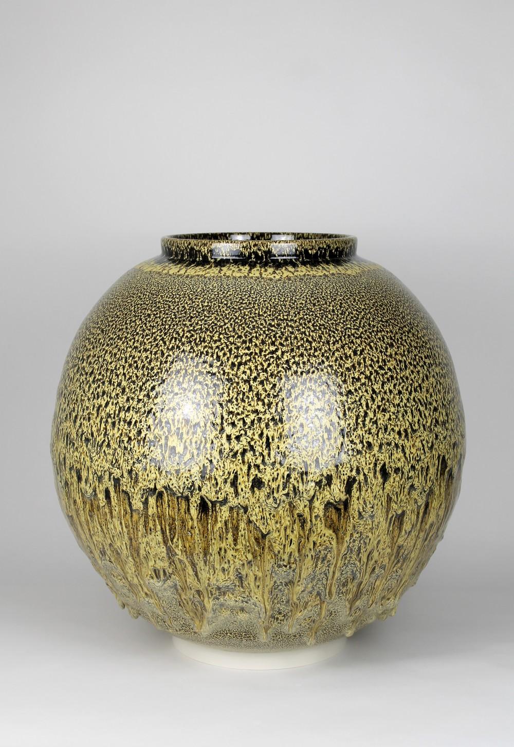El primer premio, dotado con 7.000 € y patrocinado por el Ayuntamiento de l’Alcora, ha sido para la obra “Golden Jar”, del ceramista barcelonés afincado en Reino Unido Albert Monserrat Balcells. Se trata de una gran jarra torneada en porcelana y decorada con esmalte “oil spot”, de la que el jurado ha destacado la poética conseguida a partir de una forma de arraigada tradición, proponiendo una renovación en el lenguaje cerámico y buscando a la vez los límites de la técnica.