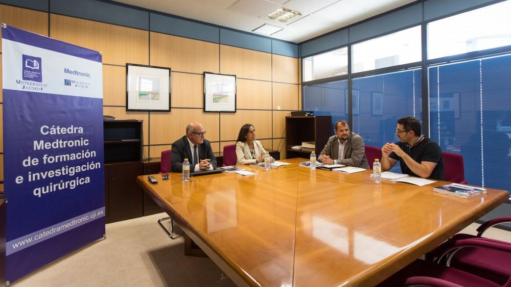 La Comissió Mixta de Seguiment de la càtedra, en la seua reunió anual, ha aprovat la memòria de les activitats realitzades durant el passat curs acadèmic i el programa d'activitats per al curs 2018/2019. Entre les novetats per al pròxim curs, destaca la creació d'un premi al millor treball de fi de grau de l'estudiantat de Medicina i un altre al millor treball de recerca en l'Hospital General Universitari de Castelló. En la reunió de la Comissió han participat Javier Sáenz, en representació de l'empresa Medtronic; Isabel García, vicerectora d'Estudis i Docència, i el doctor Antoni Llueca, director de la càtedra, en representació de l'UJI.