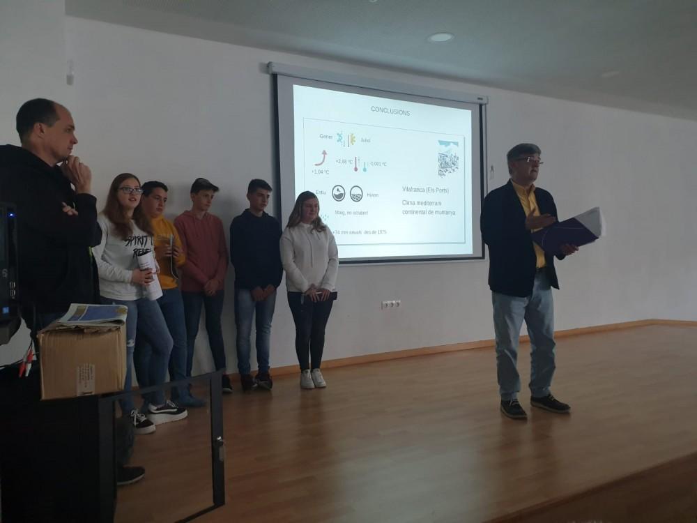El acto de entrega del premio en el propio instituto contó con la presencia de Manel Pastor, secretario de la FIECOV; Pau Fabregat, presidente de Maestrat Viu y en representación d'Escola Valenciana; Jordi Marín, del Centre d'Estudis d'Els Ports; Silvia Colom, edil de educación del Ayuntamiento de Vilafranca, así como la directiva del instituto. El centro recibió un lote de libros para ampliar la biblioteca y a los alumnos premiados se les hizo entrega de un cheque de 500€. En el acto los galardonados también expusieron a los asistentes las conclusiones de su trabajo.