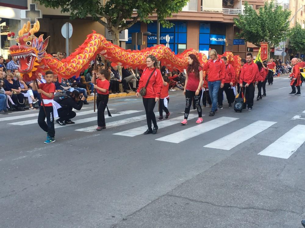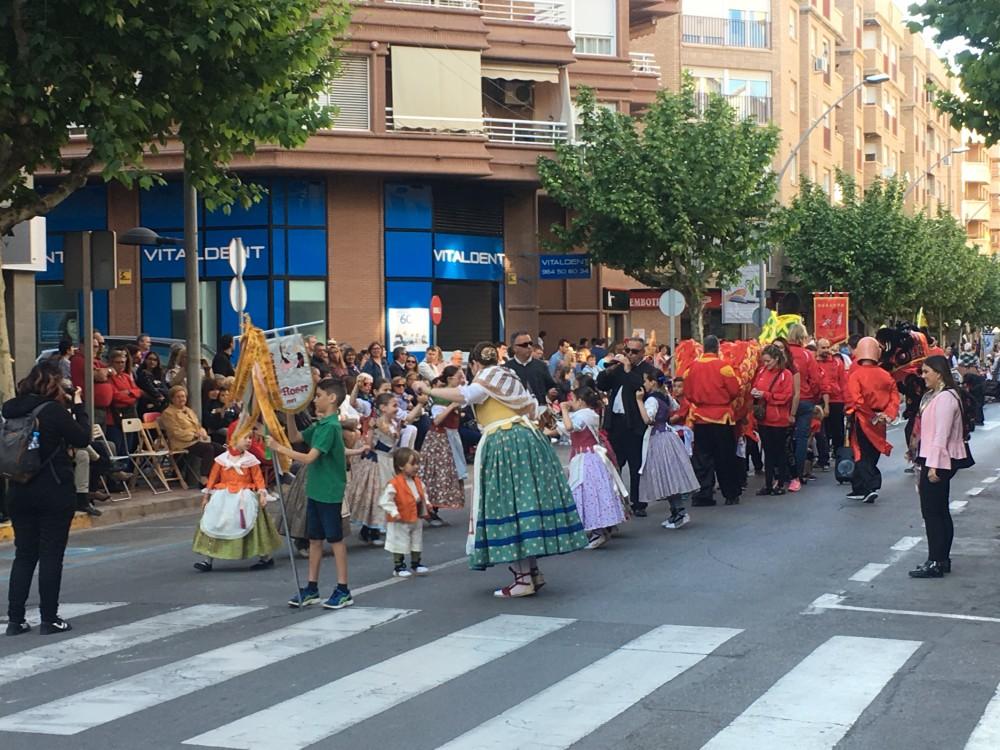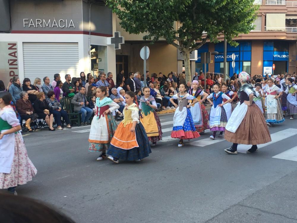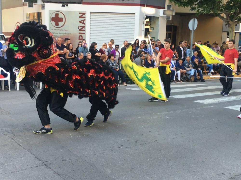 La desfilada ha arrancat al voltant de les 18.10 en l’Avinguda Francesc Tàrrega, com és costum, i l’han encapçalada els Gegants de la Colla Gegantera de Vila-real i altres agrupacions arribades de diversos punts de la geografia. Seguidament ha passat la Volla de dolçainers i tabalaters El Trull, que enguany commemora el seu 30 aniversari, i que hores abans ha celebrat un dinar de germanor a la plaça de Sant Pasqual amb algunes colles que han tingut relació amb ella i que a més s’han unit en una macrocolla de 120 músics per a actuar en la cavalcada de festes. Després el grup de tir i arrossegament local i els grups de danses infantils del Roser i la Puríssima. Un dels moments més espectaculars ha sigut l’actuació del Club d'Arts Marcials de Vila-real, amb un drac inclòs.
