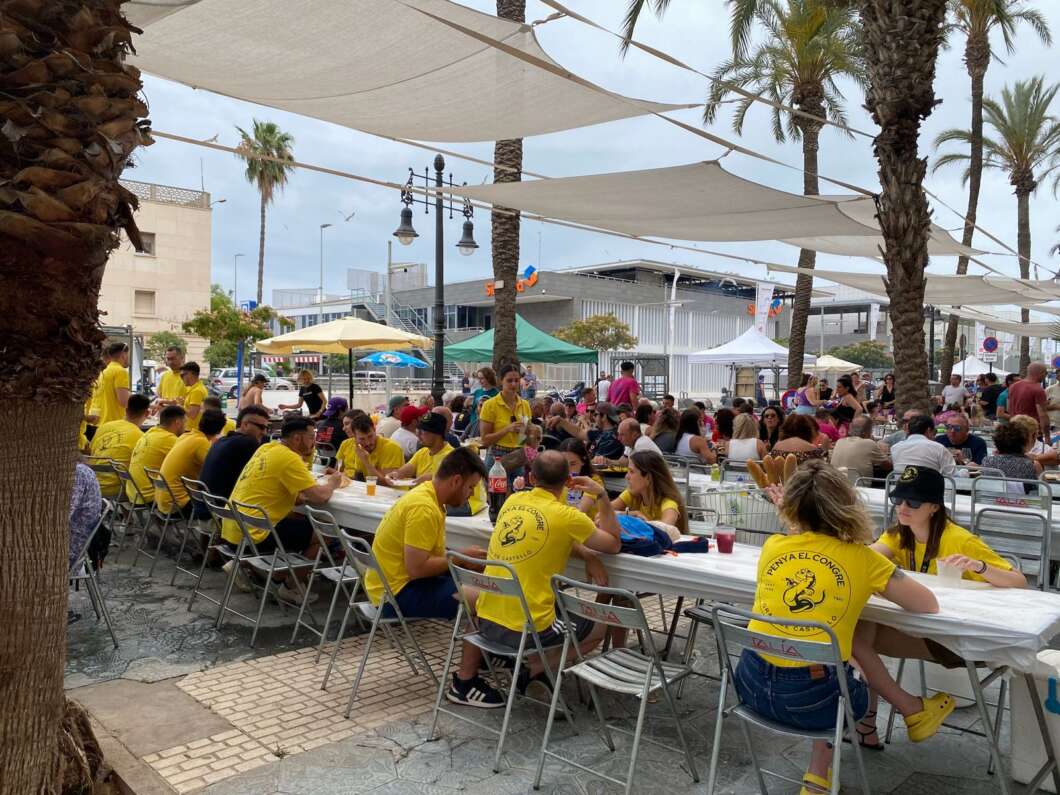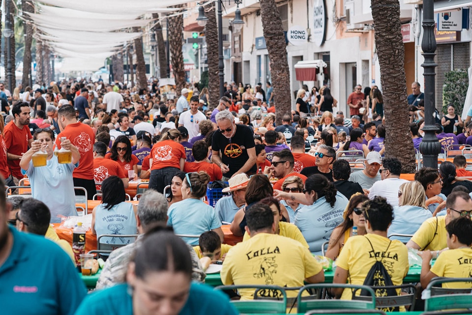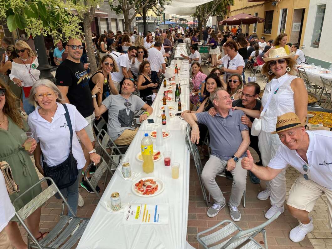 El Grau de Castelló tiene marcado en el calendario el viernes de las fiestas de Sant Pere porque se celebra el Día de las Paellas. Y lo han vuelto a conseguir. Han reunido a más 7.000 personas en una de las jornadas más multitudinarias de la festividad de Sant Pere. Desde primera hora de la mañana ya estaba todo el Paseo Buenavista preparado para instalar las mesas y sillas que al final ocuparían toda la calle y las vías adyacentes con un ambiente festivo. Las mesas estaban señalizadas por colores y con los nombres de los integrantes.