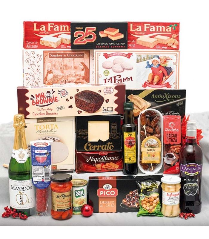 Por todas partes abundan las cestas repletas de vinos, cavas, alcoholes de alta graduación e incluso cervezas. Lo que es realmente complicado es encontrar una cesta sin alcohol en Castellón. No obstante, tanto para quienes no puedan tomarlo como para quienes prefieren una Navidad responsable, esta es la opción más interesante. Se trata de una cesta repleta de productos navideños y que incluye Sidra sin alcohol y licor de mora ¡hasta los más pequeños podrán disfrutarla al 100%!