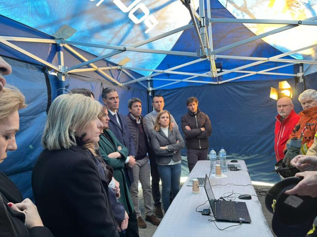 El presidente del Gobierno, Pedro Sánchez también viajaba a Valencia y participaba en las gestiones desde el puesto de mando ubicado a los pies del edificio siniestrado.
