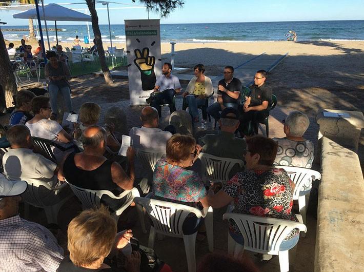 Los candidatos de 'A la Valenciana' reforzaron ayer su presencia en los municipios de la Plana Baixa y en el sur de Castelló. Así, después de una visita al mercado de Almassora de la número uno de la candidatura, Marta Sorlí, y tras dar a conocer el programa en el mercado de Borriana, los miembros de la candidatura de la confluencia participaron en sendas charlas coloquio en los municipios de Xilxes y Nules, en las que Marta Sorlí, Sebastián Bretones y Emilia Sánchez-Pantoja centraron sus intervenciones en la necesidad de activar el Plan Cantabria para frenar la regresión litoral y potenciar las playas como principal activo político.