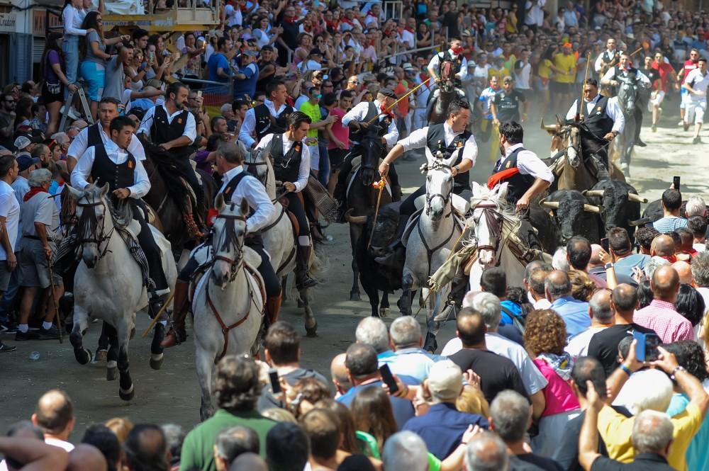 La primera Entrada de Toros y Caballos de Segorbe de 2019 ha tenido una duración de algo más de un minuto y ha sido algo accidentada. Uno de los seis toros ha corneado al caballo Orgulloso del caballista Pablo Fortea y el caballista Baldomero ha caído.