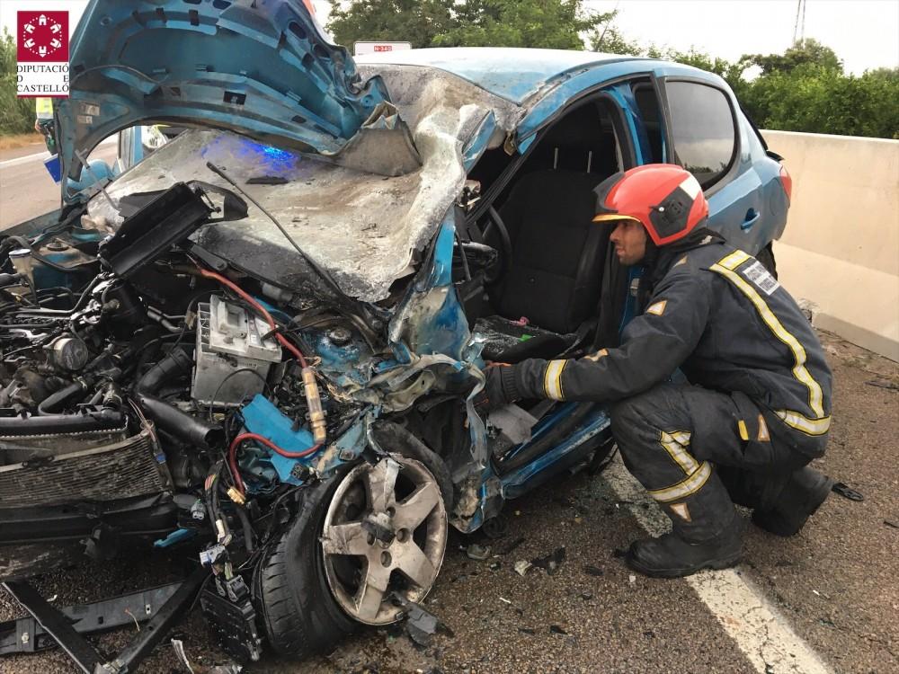 Accidente con atrapados entre un coche y un camión en la carretera N-340 a la altura de Les Alqueries