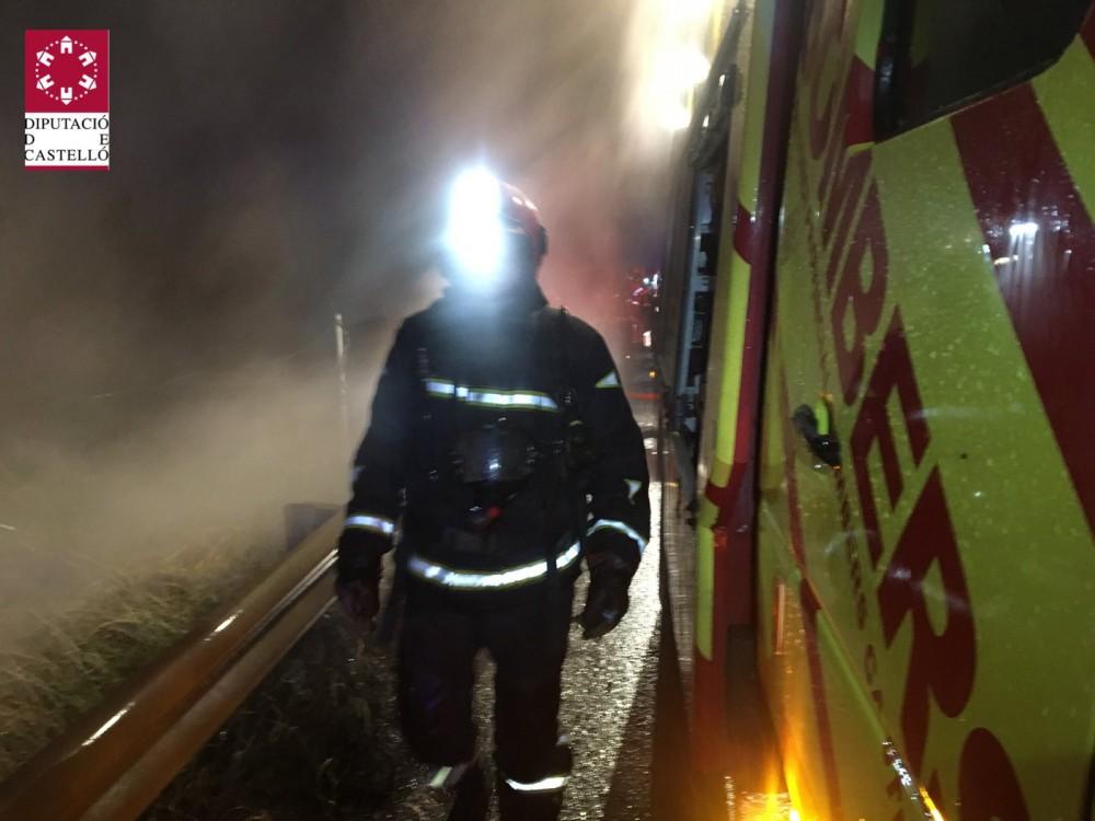 Un camión articulado se ha salido de la vía en la CV 10, en el término municipal de La Pobla Tornesa, sobre las 20.30 horas de este viernes, y se ha incendiado, sin afectar al conductor del mismo, por lo que hasta el lugar de los hechos se han desplazado bomberos del Parque de la Plana Alta.