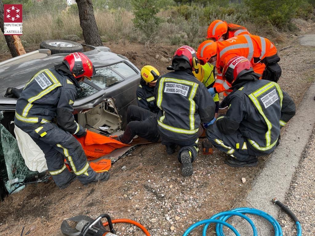Una dotación del CPBC del Parque Alto Palancia se ha movilizado esta tarde para intervenir en un accidente de tráfico. Un vehículo ha volcado en la A23 a su paso por Sot de Ferrer. Los bomberos han trabajado en la excarcelación de uno de los dos ocupantes y el Samu lo ha trasladado al hospital.