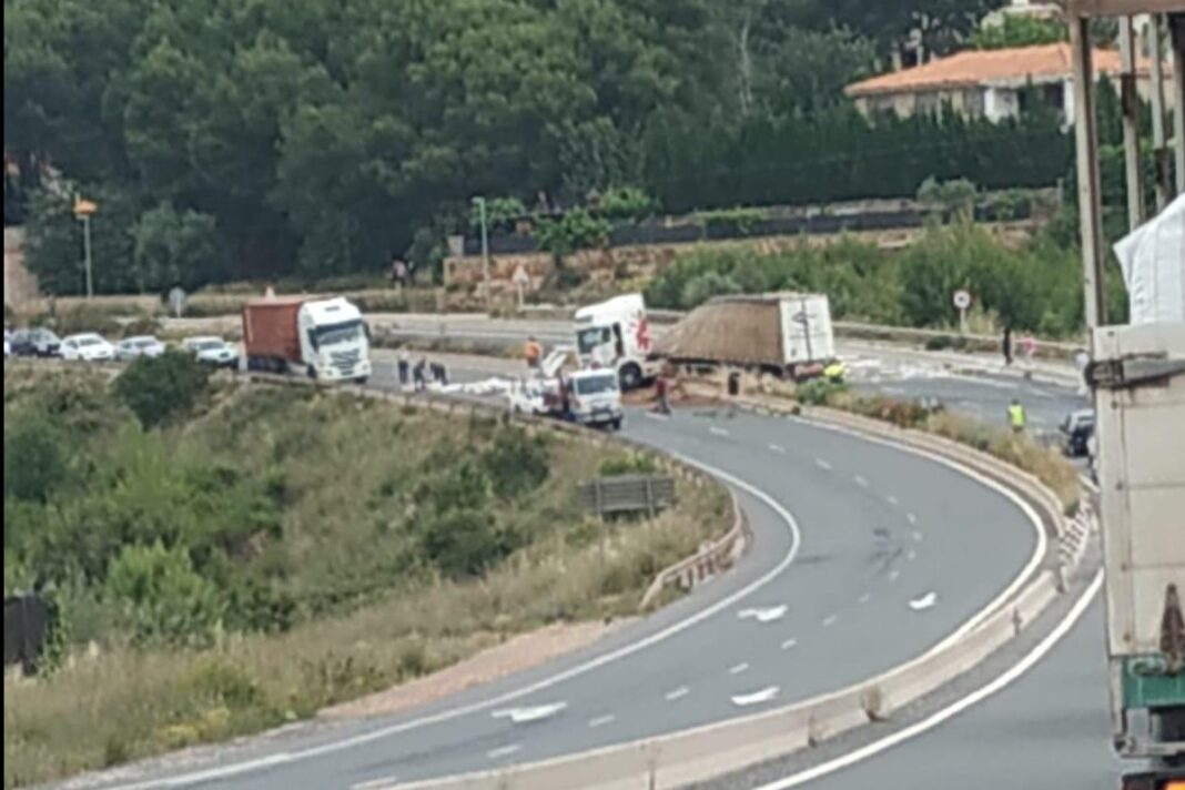 Fuentes de la Guardia Civil de Tráfico han señalado, que se ha tratado del vuelco de un camión y que no se han producido daños personales.