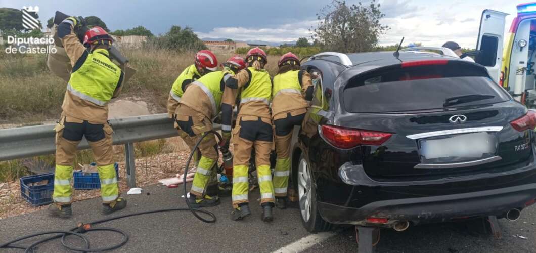 Dos autobuses y un turismo han sufrido un aparatoso accidente de tráfico en la N-340 a su paso por el término municipal de Vinarós. Como consecuencia del accidente, el conductor del automóvil ha resultado atrapado dentro de su vehículo.