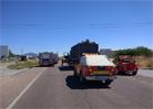 Pero la cosa era aún peor, porque se confirmaba la presencia de uno de los conductores que permanecía atrapado en el interior de la cabina de su camión, que está totalmente en llamas.
