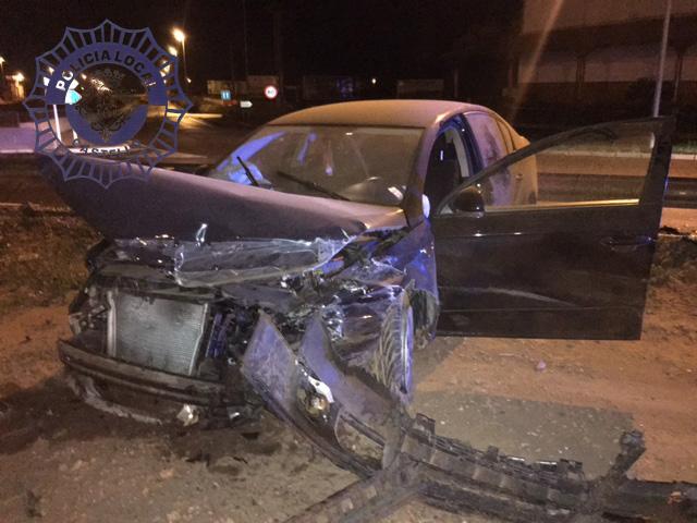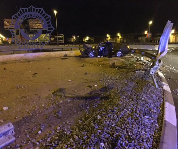 La Policía Local de Castellón ha intervenido esta madrugada en la avenida Valencia a la altura de la rotonda de la autovía de accesos al Puerto CS 22 en un accidente de tráfico en el que ha estado implicado un solo turismo el cual, tras salirse de la vía, ha colisionado violentamente contra el interior de la glorieta. El siniestro se ha producido sobre las cuatro de la madrugada cuando, por causas que está investigando el equipo de Atestados de la Policía Local de Castellón, un turismo marca Volkswagen Passat de color gris se ha salido de la calzada en la avenida Valencia y tras perder el control, se ha empotrado contra la bionda de la glorieta quedándose finalmente subido sobre el interior de la rotonda. Un conductor que en ese momento circulaban por la avenida Valencia ha avisado a la Sala Municipal de Seguridad y Emergencias 092 del accidente de tráfico.