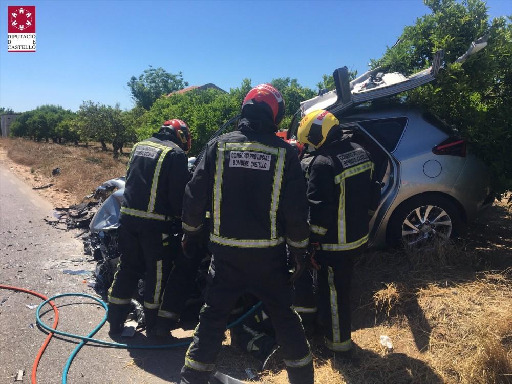 Sobre las 11.45 horas los servicios de emergencias recibían un aviso que alertaba en un accidente de tráfico entre dos vehículos en le camí de Benafelí, dentro del término municipal de Almassora.