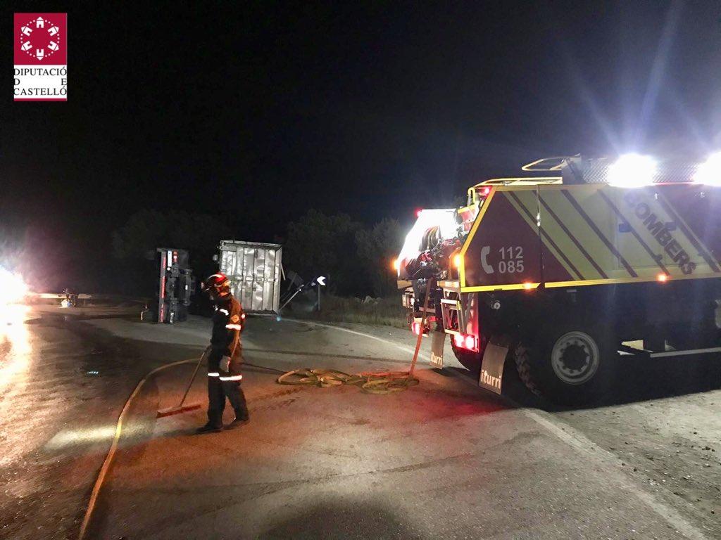 También se ha precisado la presencia de los bomberos de la Diputación de Castellón que han revisado posibles fugas de combustible de los camiones tras el accidente tras comprobar que no había ninguna persona atrapada.