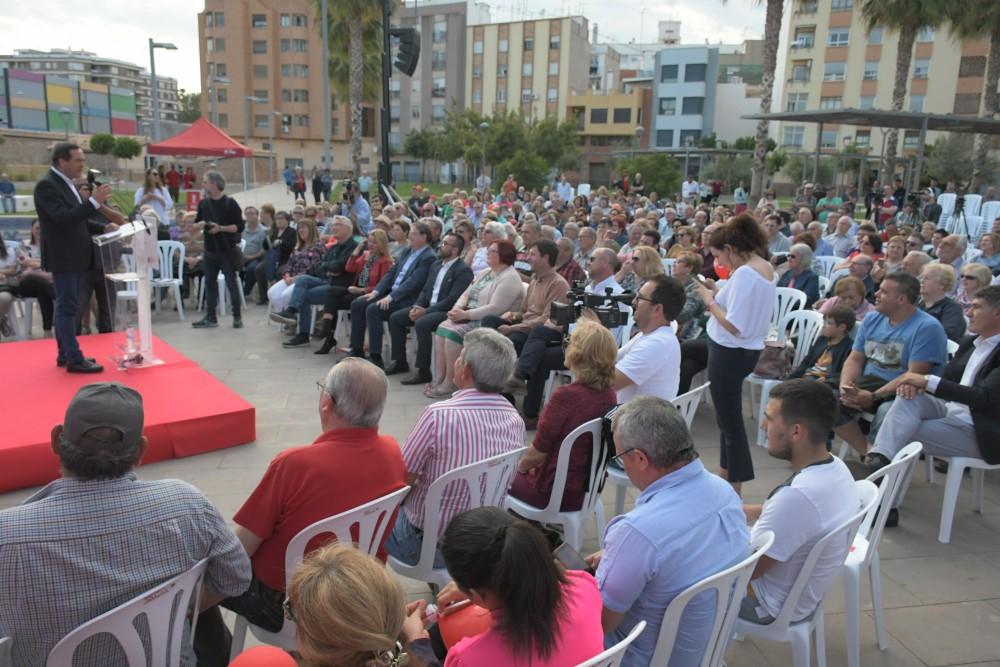 Un Jardí Jaume I ple de veïns, simpatitzants i curiosos ha sigut escenari assistit aquesta vesprada a l'acte central de campanya del PSOE de Vila-real, que tria el mateix espai que quatre anys arrere i els mateixos convidats. El president de la Generalitat, Ximo Puig, i l'ex president del Congrés i ex ministre José Bono han abrigallat aquesta vesprada al candidat del PSPV-PSOE a l'alcaldia de Vila-real, José Benlloch, en l'acte central de campanya celebrat al jardí Jaume I, davant més de 500 persones, segons fons del partit. Un acte en el qual els tres polítics ha posat de manifest la “oportunitat històrica” que es presenta de poder comptar amb un president socialista a Espanya, en la Comunitat i a Vila-real i han destacat la necessitat d'anar a les urnes per a evitar una reculada i que es repetisca el mateix escenari que a Andalusia.