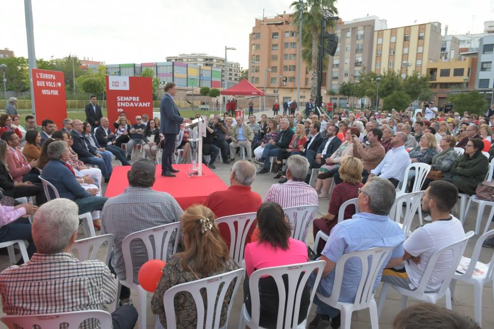 El president Puig ha lamentat que a Europa la dreta moderada es negue a governar amb l'extrema dreta, “en canvi ací siga l'última esperança que tenen per a governar” i ha manifestat que quan el PSOE ha tingut una majoria més àmplia, “més convivència i menys sectarisme s'ha respirat, “perquè hem sigut governants de tots, dels quals ens votaven i els que no. Vila-real ha d'anar aquest diumenge les urnes i consolidar el canvi que ha propiciat Benlloch i que és crucial per al futur de Vila-real”. “Per al PSOE el més important són les persones i per això el primera que vam fer en arribar al Govern de la Generalitat és suprimir el copagament farmacèutic, avançar la Llei de Dependència i posar en marxa tots els mecanismes possibles per a reduir l'atur”. I finalment, el nostre futur, només pot anar de la mà d'Europa, bressol de la democràcia, el benestar i els drets socials i a pesar que hi ha intents de destruir-la, necessitem continuar donant suport a aquest projecte comú”.