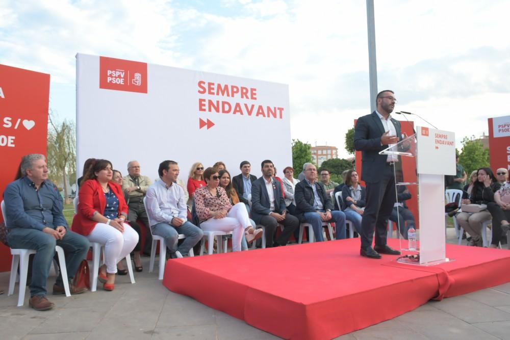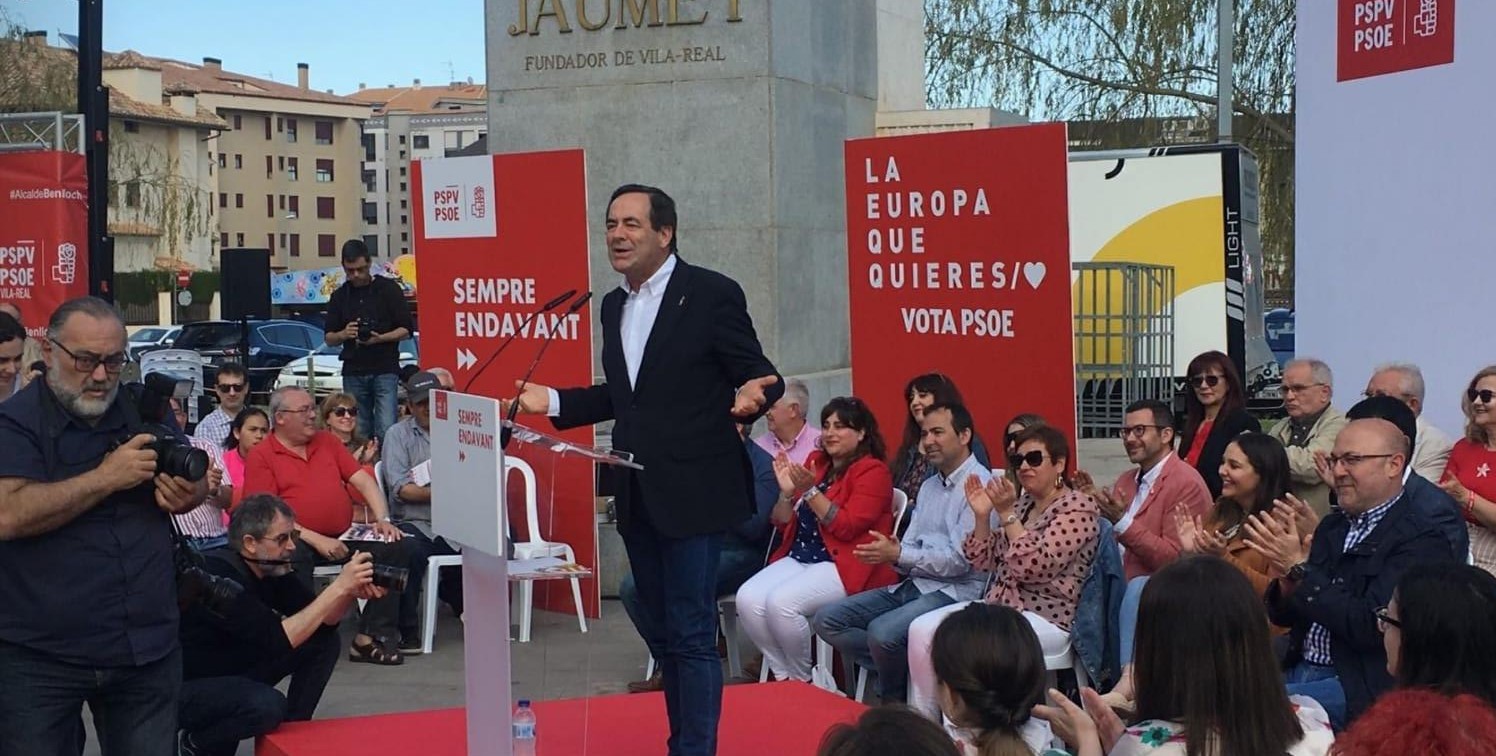 El president de la Generalitat en funcions i l'expresident del Congrés i exministre  abrigallen al candidat socialista a l'alcaldia en l'acte central de campanya del PSPV-PSOE de Vila-real. Benlloch apel·la a la majoria “estable” i a no deixar-se portar per un excés de confiança que propicie un escenari similar al d'Andalusia i evitar que “els que volen tornar al passat” s'unisquen per a arruïnar el canvi a Vila-real. Assenyala que la ciutat donarà un gir de 360 graus en els pròxims quatre anys si el PSOE contínua en el poder