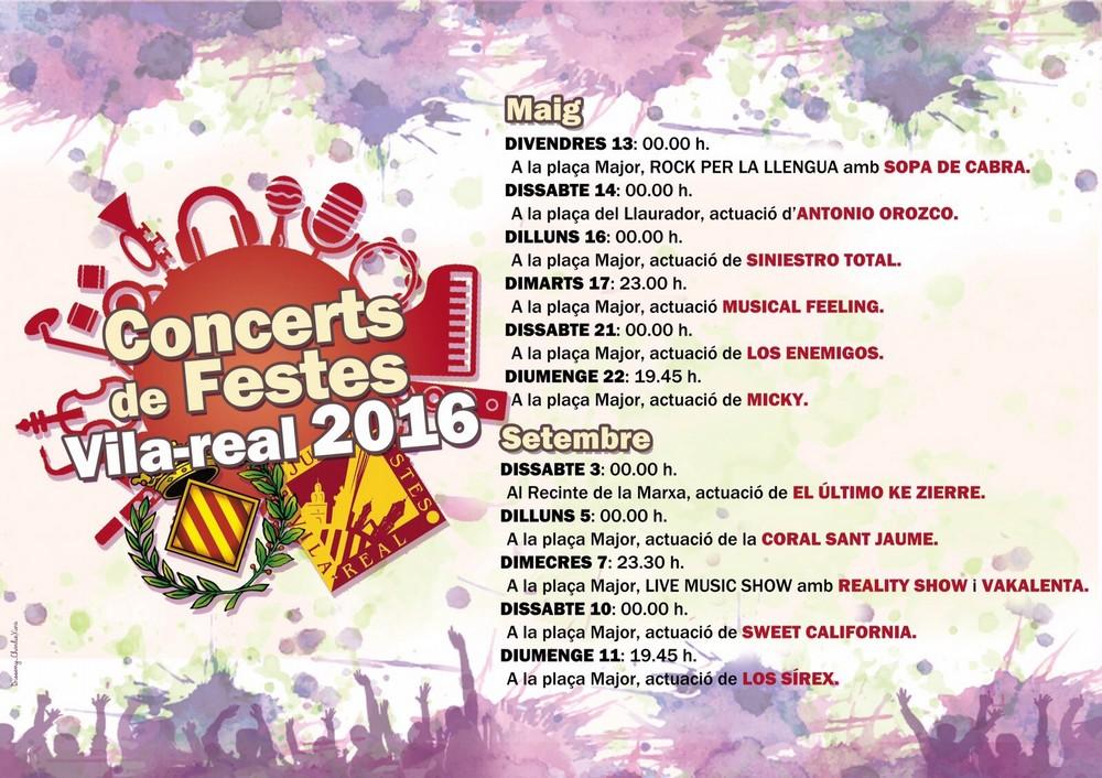 Los conciertos que la Junta de Fiestas de Vila-real ha preparado para las próximas Fiestas Patronales de mayo y septiembre ya son toda una realidad.