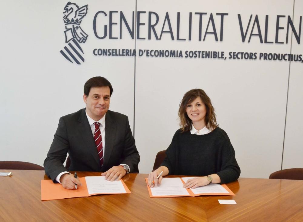 La directora general de Internacionalización y directora adjunta del Instituto Valenciano de Competitividad Empresarial, María Dolores Parra, y el director territorial de Cajamar, Eduardo Holgado, han firmado un acuerdo marco de colaboración dirigido a estimular, promocionar y apoyar la internacionalización de las empresas de la Comunitat Valenciana.