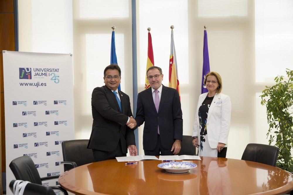 El rector de la Universitat Jaume I, Vicent Climent, y el rector de la Universidad de Piura (Perú), Sergio Antonio Balarezo, han firmado un convenio de colaboración para estrechar los lazos de colaboración entre ambos centros de educación superior. Los dos rectores han destacado el interés de ambas universidades por favorecer la movilidad del estudiantado, profesorado y personal universitario y fomentar la realización conjunta de estudios y proyectos de investigación, así como la cooperación en actividades docentes y de difusión cultural.