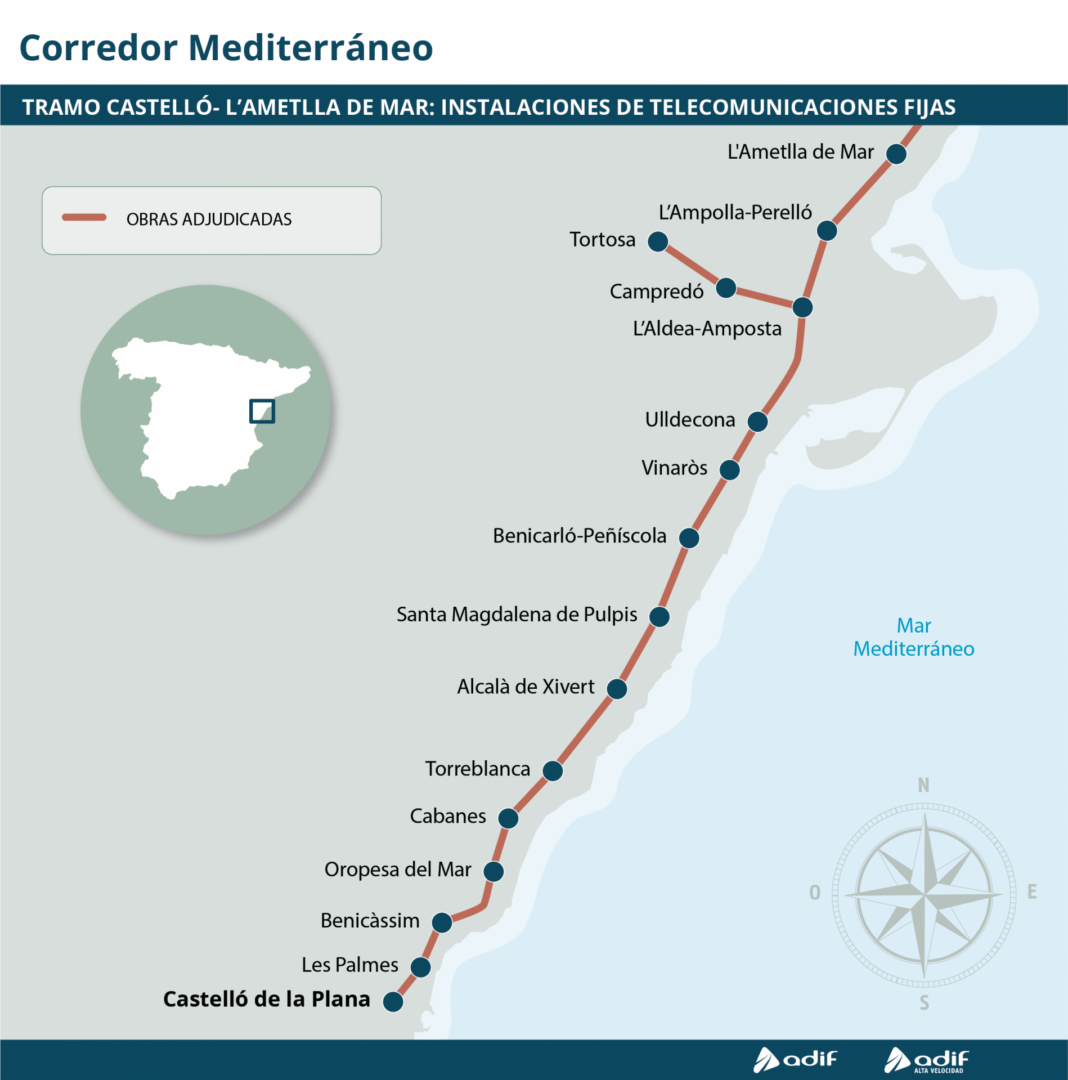 El Consejo de Administración de Adif Alta Velocidad ha autorizado en su reunión de hoy la adjudicación, por importe de 12.668.580 euros (IVA incluido), del contrato para la ejecución del proyecto de instalaciones de telecomunicaciones fijas en el tramo Castelló de la Plana-L’Ametlla de Mar y en el ramal Tortosa-L’Aldea/Amposta.