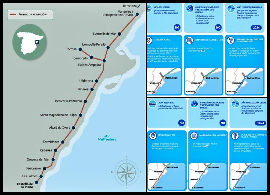 El Consejo de Administración de Adif ha adjudicado los proyectos para la adecuación de la conexión ferroviaria entre Vandellós y Castellón al ancho europeo del Corredor Mediterráneo. El proyecto, dividido en dos tramos, sumará una inversión de más de 66,5 millones de euros, con el objetivo de que entre en servicio para el verano de 2023. Con estas obras, Castellón quedará conectada por el norte, con ancho internacional y alta velocidad, y con el sur, con doble vía mixta y velocidad ‘razonable’