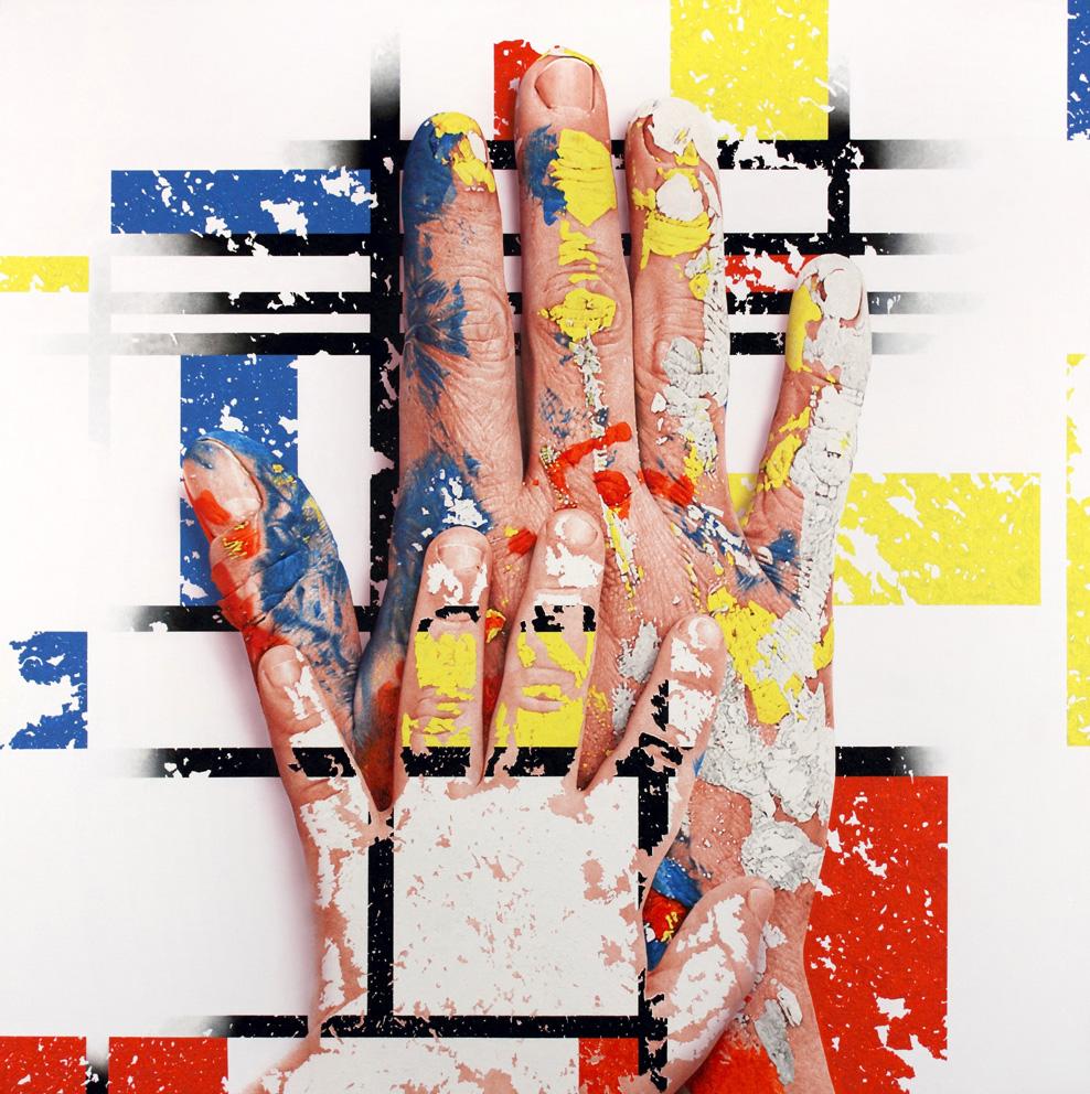 Mans viu, de nou, una mena de renàixer. Les seues primeres mans, aquelles que van ser de la seua mare, es mostraven nues i eren pràcticament quadres monocromàtics. Anys després, principalment amb les mans dels seus fills, la sèrie va viure una eclosió de color. Eren mans tacades de pintura, fortament cromatitzades, com jugant dins del quadre. Un símbol més a la seua pintura. Mans és una sèrie que barreja aquest etern ritornello de l'obra de Pina amb referències visuals d'obres molt conegudes de Miró, Mondrian, Kandinsky... que amb les imatges pròpies de l'univers de Pina alteren, tornen, i muten de significat. En definitiva, amb la mestria tècnica que li caracteritza, Adrià ens torna a fer jugar amb una altra de les seues sèries, una imatge de milions d'imatges.