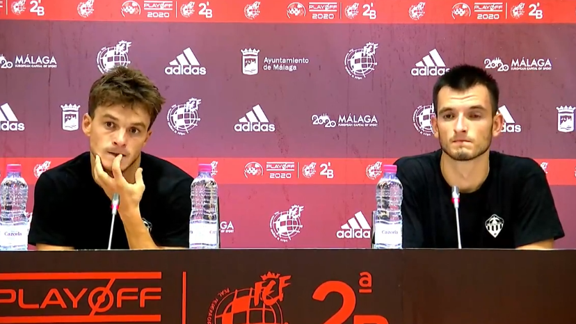 El central Adrián Lapeña y el lateral diestro Joseba Muguruza fueron los encargados de acudir a la sala de prensa de La Rosaleda para analizar el partido, el ascenso del Castellón a Segunda División. En el caso de Lapeña, éste reconoció que “sabemos la gente que movemos, la gran cantidad de aficionados que mueve este club, y también sabemos que ahora en Castellón la fiesta que está montada es máxima, por eso pedimos mucha precaución a todos”.