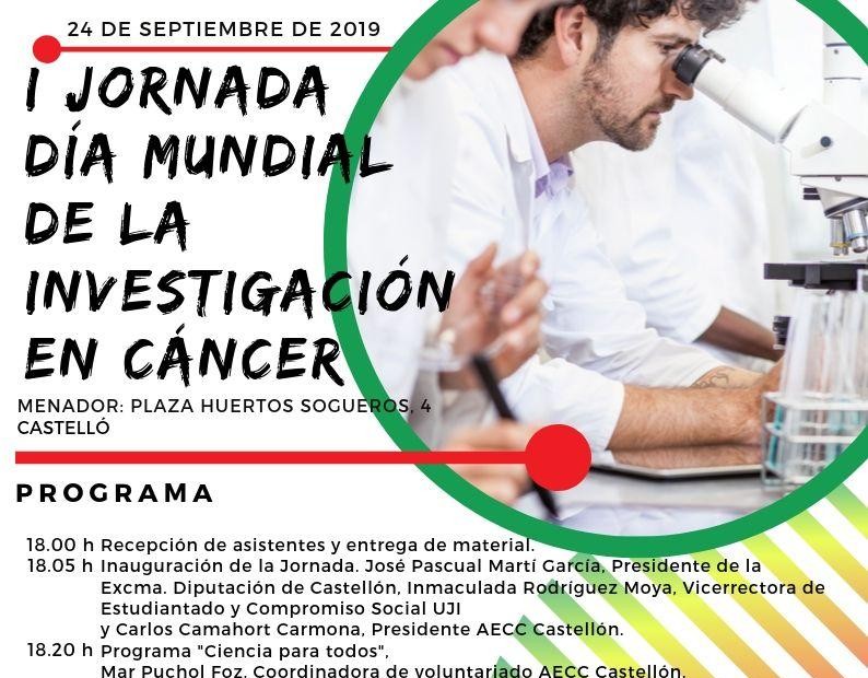 Castellón se suma por primera vez a los actos en torno al Día Mundial de la Investigación en Cáncer (WCRD en sus siglas en inglés) que se ha celebrado hoy con diferentes actos en la provincia. Una jornada que ha servido para sumarse a la petición del presidente nacional de la AECC Ignacio Muñoz Pidal de pedir un Plan Nacional de Investigación en Cáncer. Durante la mañana las actividades se han centrado en el Hospital de La Plana de Vila-real y ya por la tarde el Menador ha acogido la I Jornada del Día Mundial de la Investigación en Cáncer. El objetivo principal de esta jornada ha sido acercar la investigación a la sociedad castellonense, dar a conocer el programa CIENCIA PARA TODOS y divulgar las ayudas de la Fundación Científica AECC, con la presentación del proyecto de la Beca Predoctoral otorgada a Raquel Gil Edo. Al acto han asistido la vicerectora d’Estudiantat i Compromís Social de la Universitat Jaume I, Inmaculada Rodríguez Moya; la diputada provincial Xaro Miralles; la concejala de Sanidad del Ayuntamiento de Castelló, Mary Carmen Ribera y el presidente de la AECC Castellón. Carlos Camahort. La presentación ha corrido a cargo de la periodista y voluntaria de la AECC Patricia Mir.