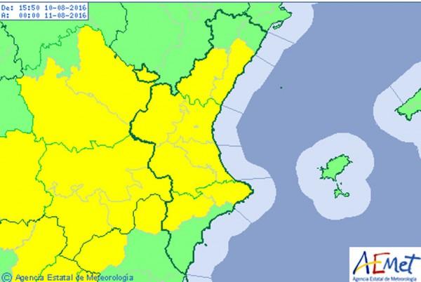 La alerta amarilla declarada por Aemet (Agencia Estatal de Meteorología), se declaraba ayer para toda la provincia, y el resto de la Comunitat Valenciana.