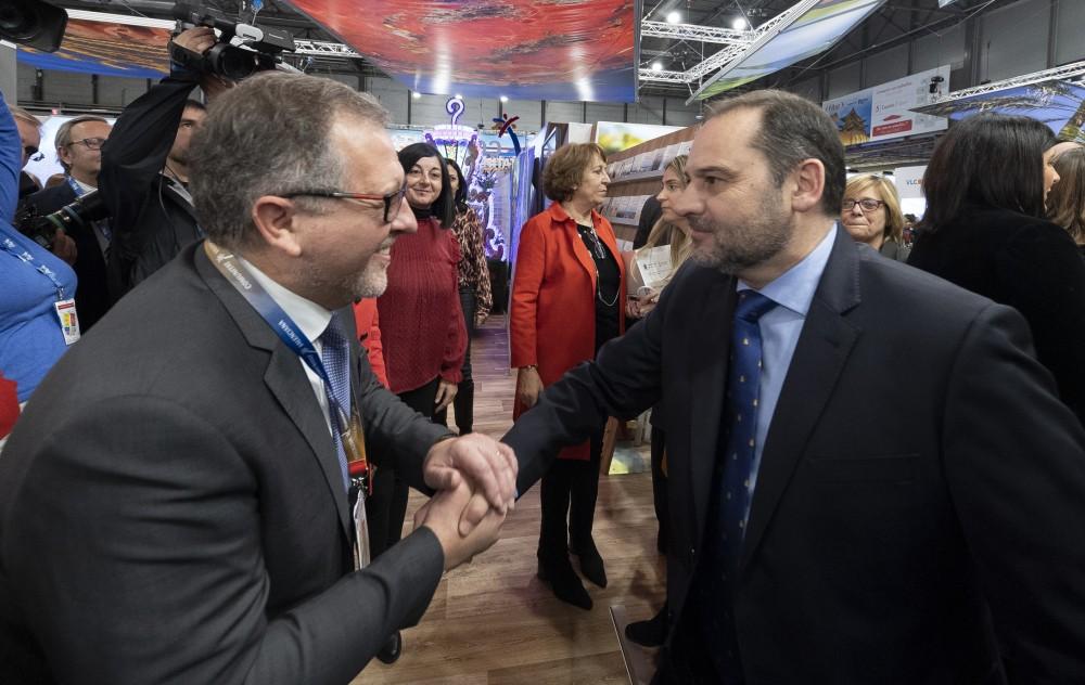 Puig y Ábalos han visitado esta maña el stand de la provincia en feria turística y se han interesado por las nuevas rutas desde el hub