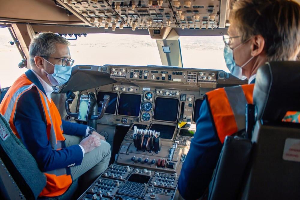 Coincidiendo con la llegada del Boeing 747-400, el conseller de Política Territorial, Movilidad y Obras Públicas, Arcadi España, se ha desplazado hasta el aeropuerto de Castellón, donde ha visitado las instalaciones de la empresa e-Cube Solutions, dedicada a las actividades de aparcamiento y desmontaje de aviones. Junto al conseller han estado la secretaria autonómica de Obras Públicas y Movilidad, María Pérez, y el director general de Puertos, Aeropuertos y Costas, Emili Obiol.