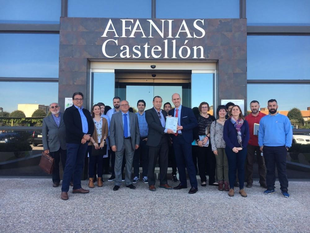 Afanias Castellón ha recibido la certificación en Gestión de Calidad ISO 9001:2015 de manos del director de SGS en Castellón, David Rissech y del responsable de desarrollo de negocio Tomás Navarro. El certificado lo han recogido el presidente de Afanias Castellón, Héctor Redó, los responsables de Calidad de la junta Directiva y el equipo de responsables del sistema de Afanias, en representación de todas las personas trabajadoras de la organización.
