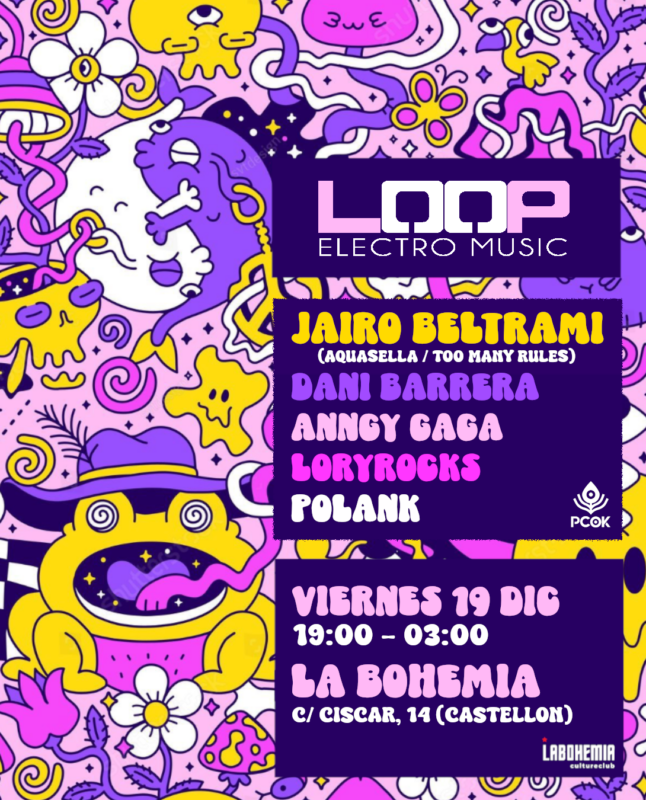 El divendres 19 de desembre La Bohemia es convertirà en el centre de l'electrònica a Castelló amb 'LOOP Electro Music'. La millor música electrònica sonarà ininterrompudament des de les 19.00 h fins a les 03.00 h. Les entrades anticipades estan disponibles des de 12 € (amb accés i consumició fins a les 21.00 h) o per 15 € (amb accés i consumició a partir de les 21.00 h). En taquilla es poden aconseguir per 20 €.
