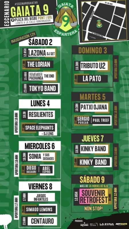 Una de las ofertas más amplias a la vez que esperadas es, sin duda, la programación de las actuaciones musicales. Así, la agenda de conciertos programada por el Ayuntamiento, que atraerá, entre otros, a La Fuga (día 6), Funambulista (día 7) o Beret (día 9), se suman las organizadas por parte de gaiatas, collas y entidades culturales de la ciudad.