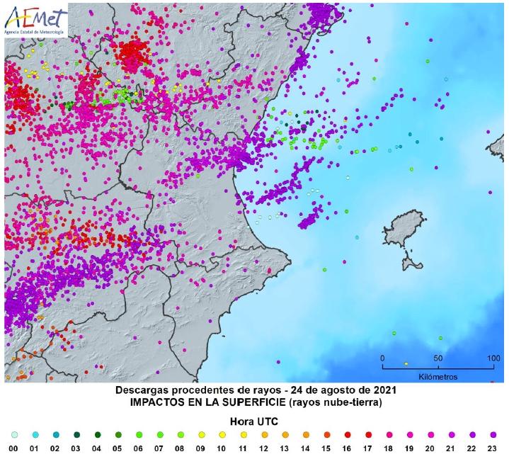 El día 24 hubo tormentas nocturnas en Valencia y Castellón que se prolongaron hasta primera hora de la madrugada del día 25 en el Baix Maestrat. Durante ese episodio se llegaron a acumular 78.0 l/m2 en Vinaròs (observatorio de Viveros Alcanar), 50.6 en Benicarló (San Gregorio), 49.0 en Benicarló (Rambla Cervera) y valores próximos a 30 en observatorios del litoral norte de Valencia.
