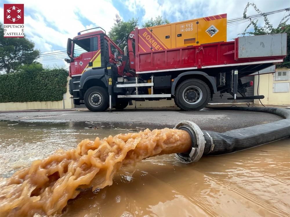 El Consorcio Provincial de Bomberos mantiene trabajando desde esta mañana en Benicàssim a 60 efectivos con 40 grupos de achique para dar solución a los problemas de inundaciones existentes en la localidad a consecuencia de la tromba de agua caída hoy. El dispositivo especial desplegado por CPBC continúa trabajando en 48 servicios de achique con 7 dotaciones de bomberos del Consorcio, 5 unidades de bomberos forestales de la Generalitat y una UML con equipo de grandes de achiques y tres unidades de mando del consorcio.